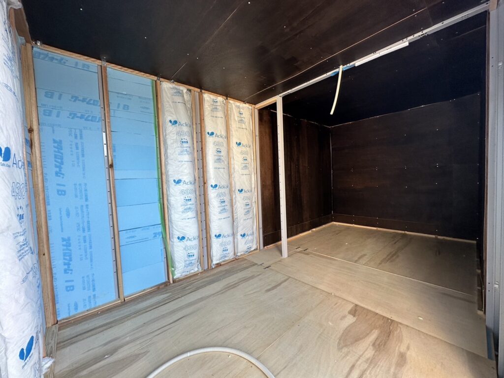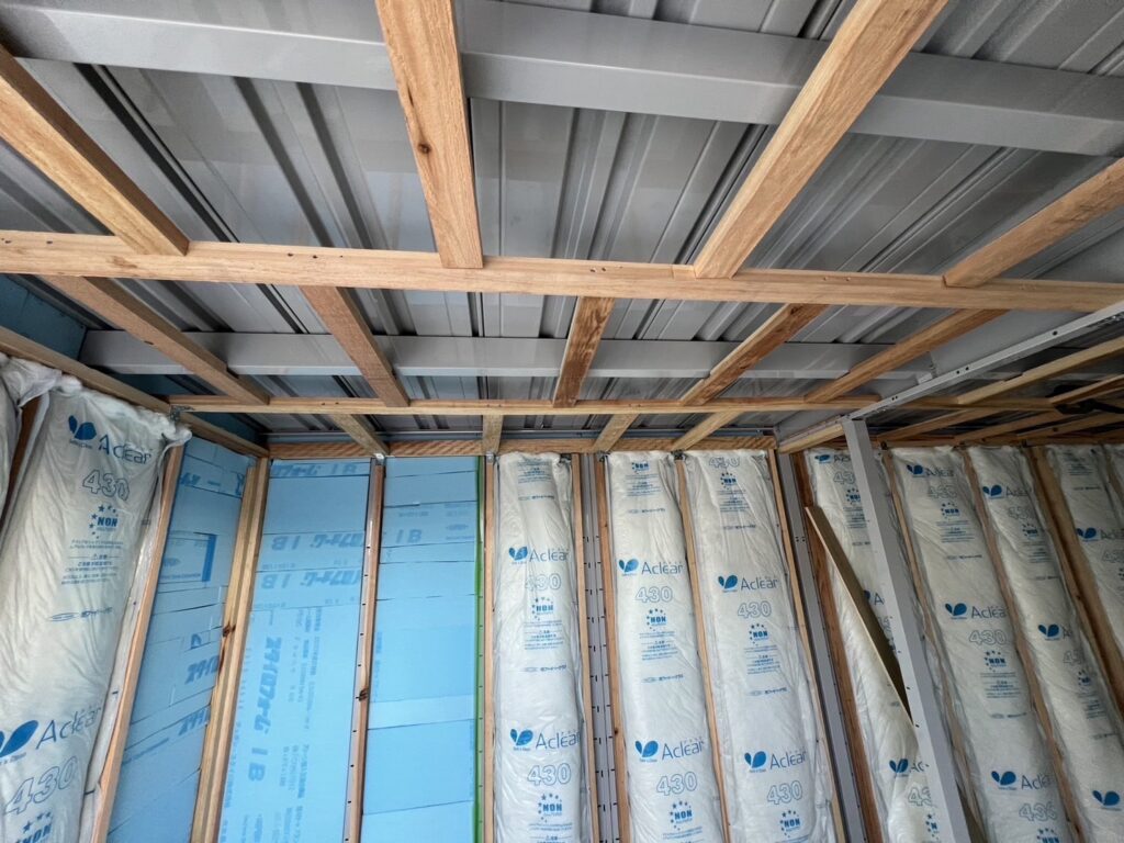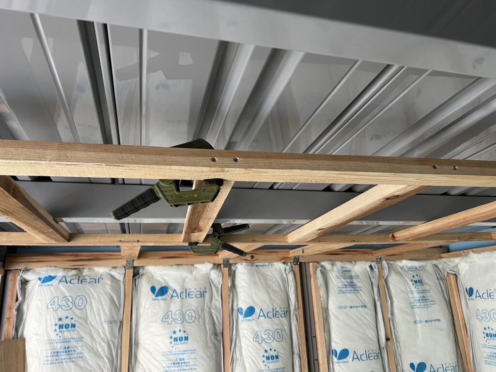 天井にはライトを取り付ける予定なので、配線や断熱も考慮しながら作業を進めていきます。